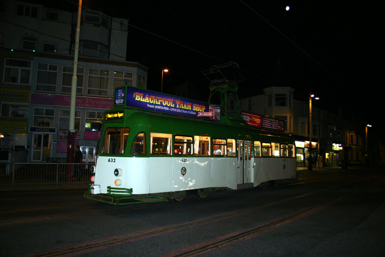 With its familiar Trams Magazine advert boxes added for the last few years of service, we see 632 heading across the Prom road for Lytham Road and then depot on 6th November 2011. This would be the last time that the tram would make this journey as it remains in a queue of trams needing some workshop attention before it can be considered for a return to service.