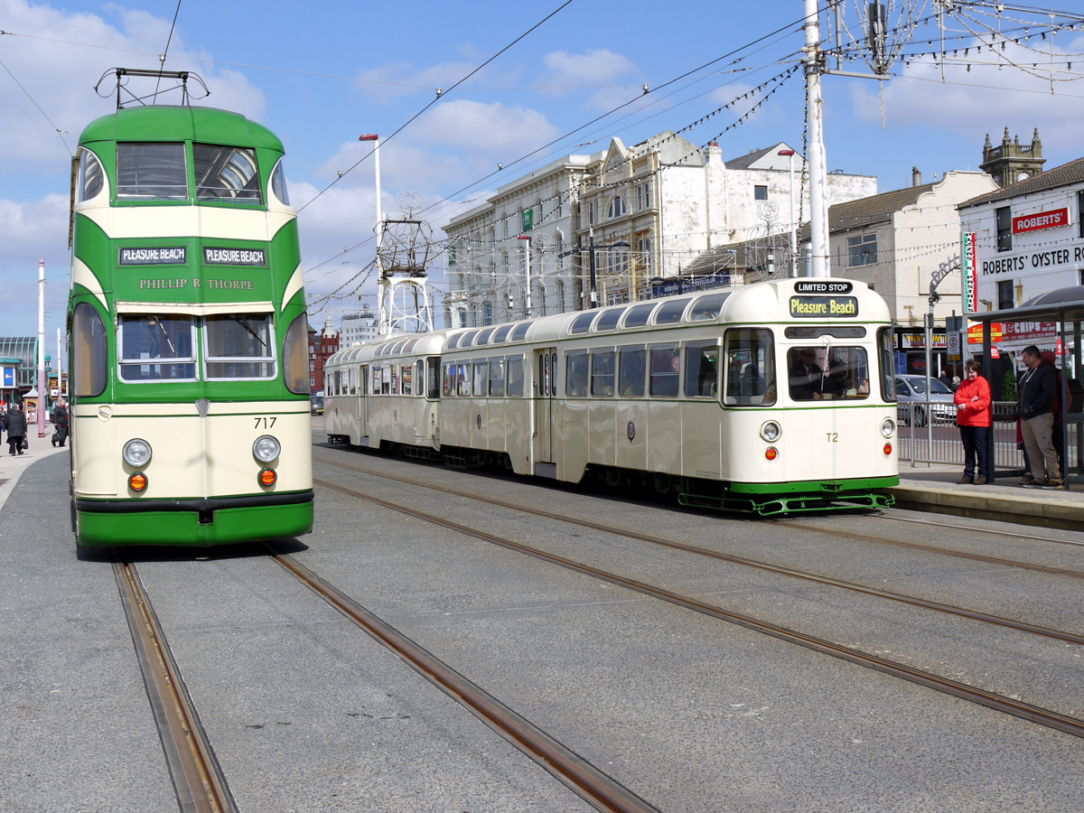 Probably the advertised highlight of the day was the use of Twin Car 272+T2 in use on the timetabled service. In this view we see the tram with the Trailer leading at North Pier with Balloon 717 for company. (Photo: Ken Walker)