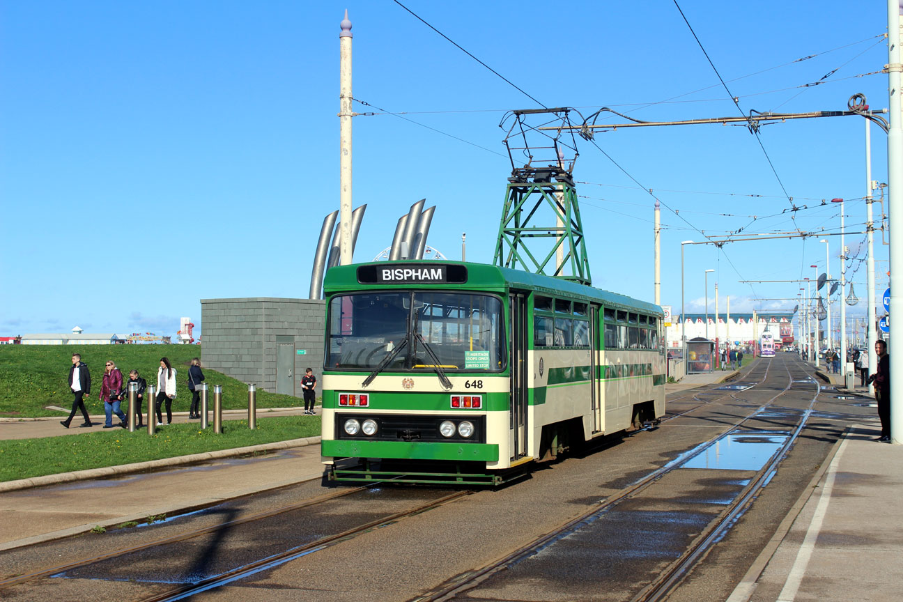On 28th September 2019 and 648 is back in green and cream and is also back at Manchester Square in this view as it heads north towards Bispham. In the distance can just about be made out Balloon 713 – in an advert for the Houndshill as was 648 in the earlier picture. (Both Photographs by Gareth Prior)