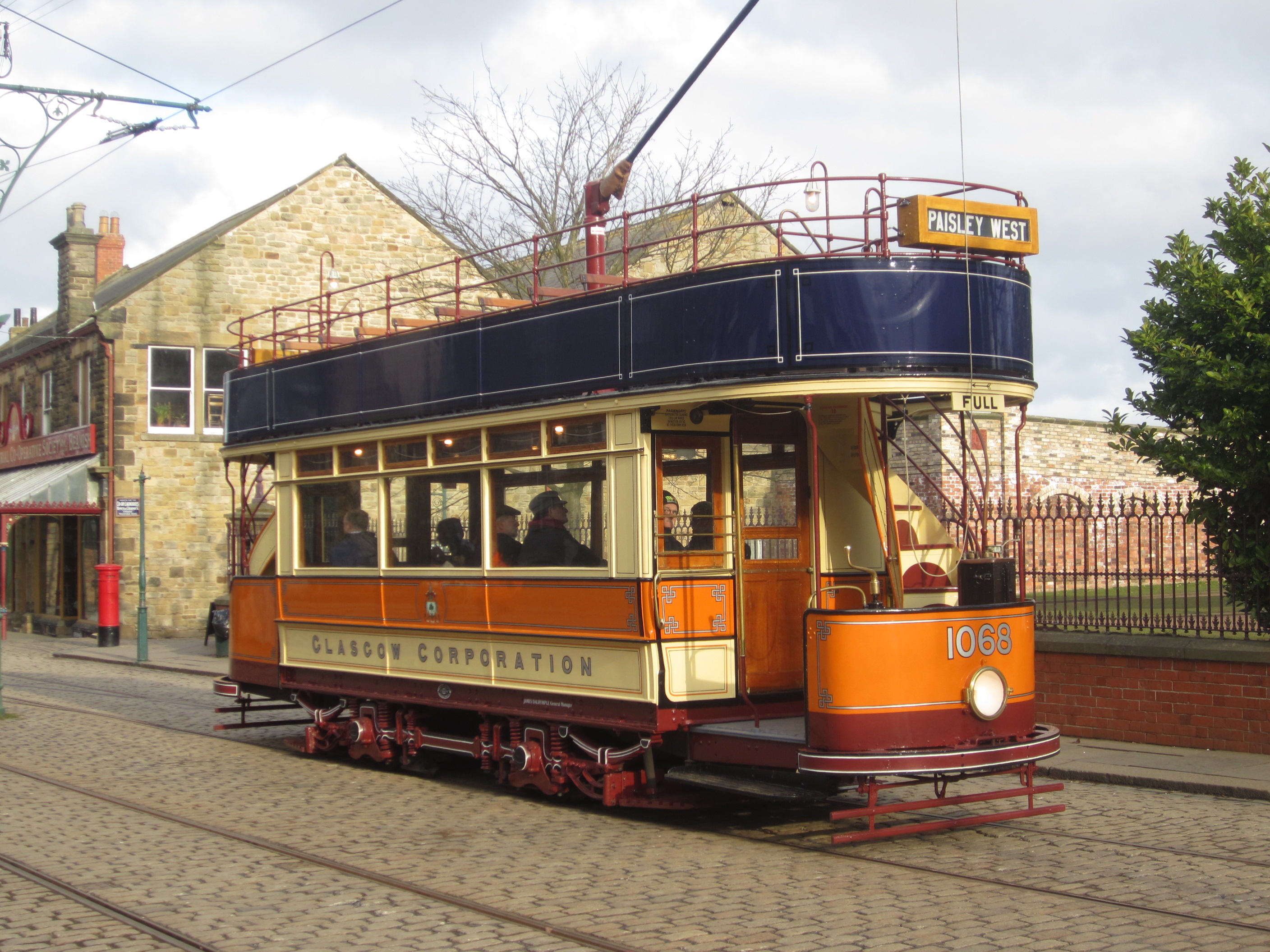 More history in the making as Glasgow 1068 pauses in Beamish town for the very first time in the evening sunshine on Friday 5th April. (Photo courtesy of the Beamish Transport & Industry Blog)
