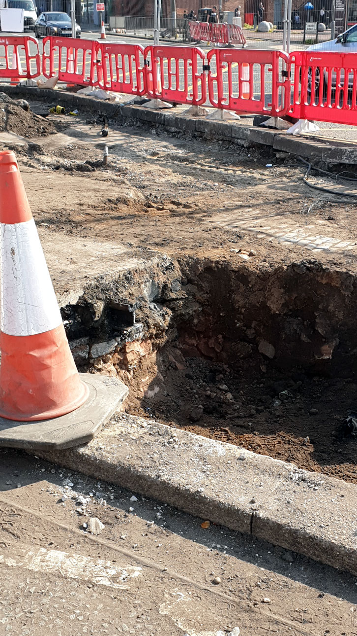 Another view of the worksite with more track seen just coming out by the large hole in the road. (All Photographs by Dave Jones, 22nd September 2020)