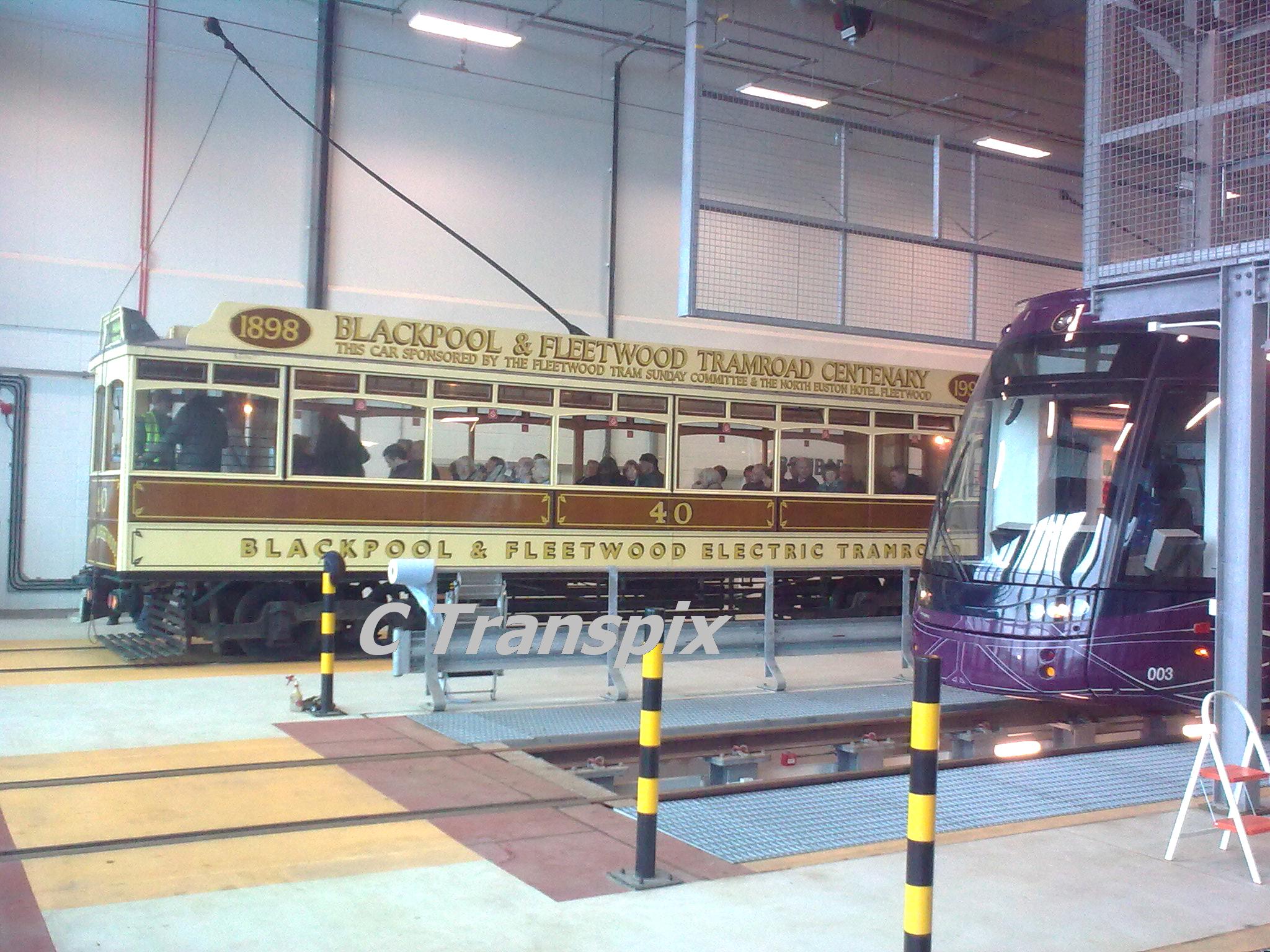 An extremely rare view showing almost a century of tramcar design inside Starr Gate depot, with Box 40 loading up for its tour as Flexity 003 looks on.