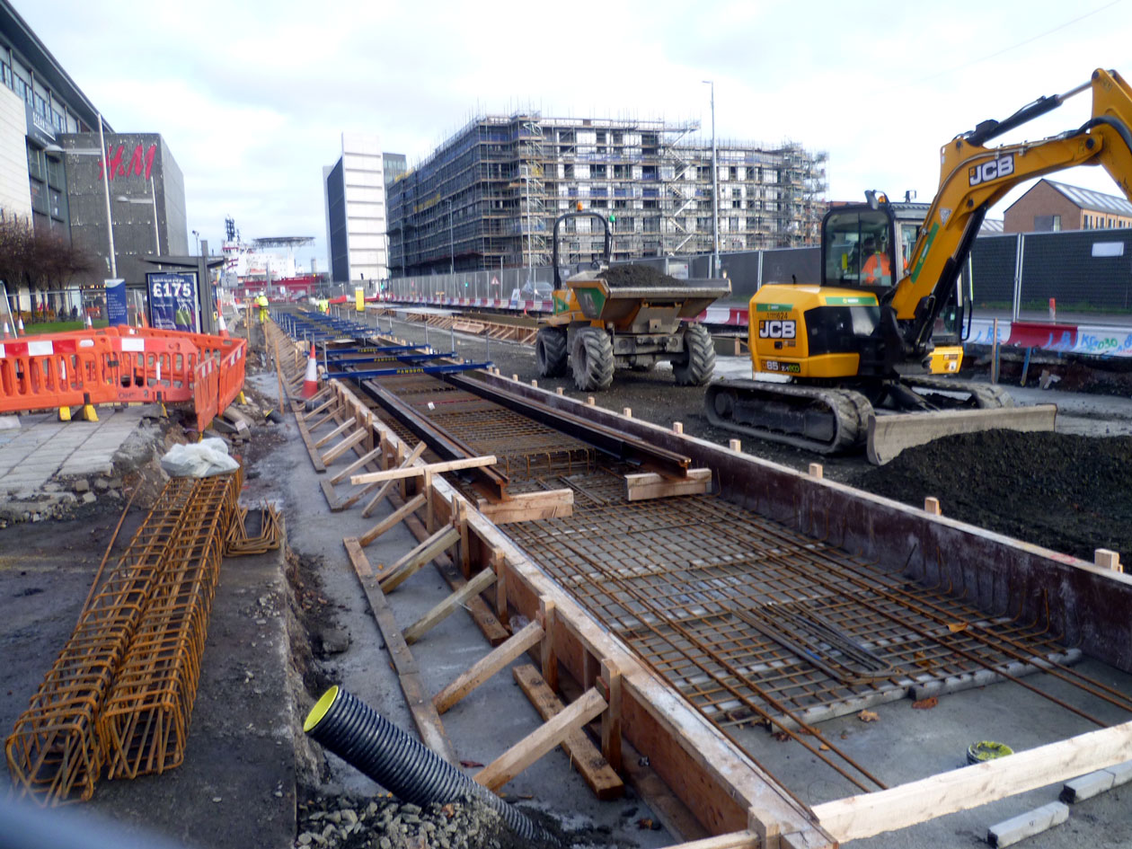 The final shot is taken at ground level and is again looking north east. The shopping centre is on the left with the Waterfront Plaza housing development to the right. The tall white building is Ocean Point office block which is partly home to Visit Scotland. The Royal Yacht Britannia is behind the far end of the shopping centre where a vertical distillery (called Port of Leith) is also being squeezed in by 2022. The trams to the city will turn sharp right between the flats and Ocean Point. (All Photographs by Roy Calderwood, 13th November 2020)