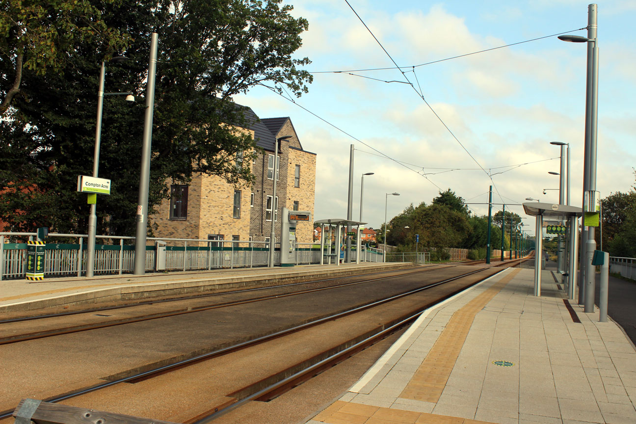 Compton Acres tramstop as seen looking towards Nottingham.