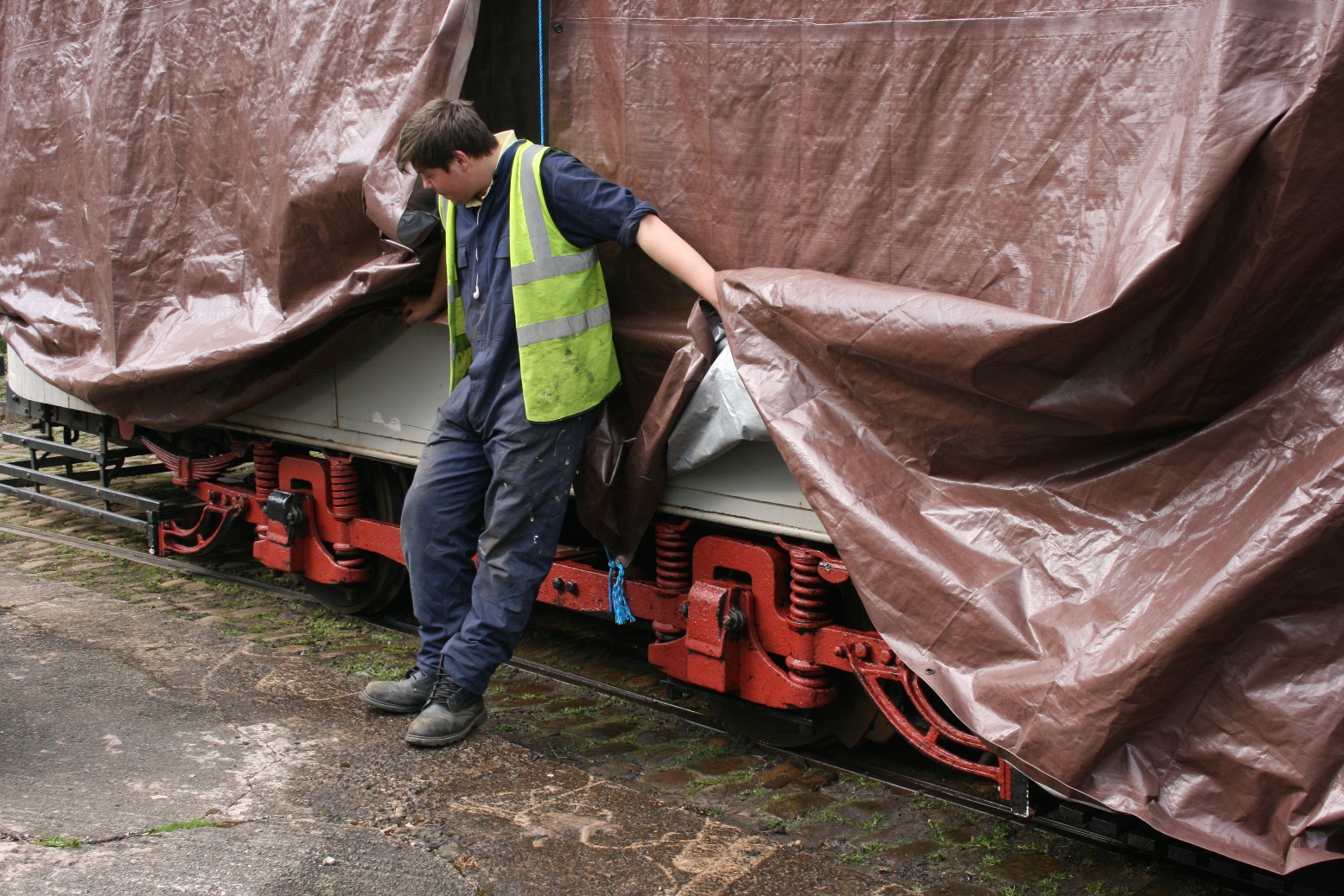 Pulling back the covers on 6 to reveal the truck, which has recently benefitted from a lick of paint to reverse the effects of outside storage. (Photo by Joe Savage)