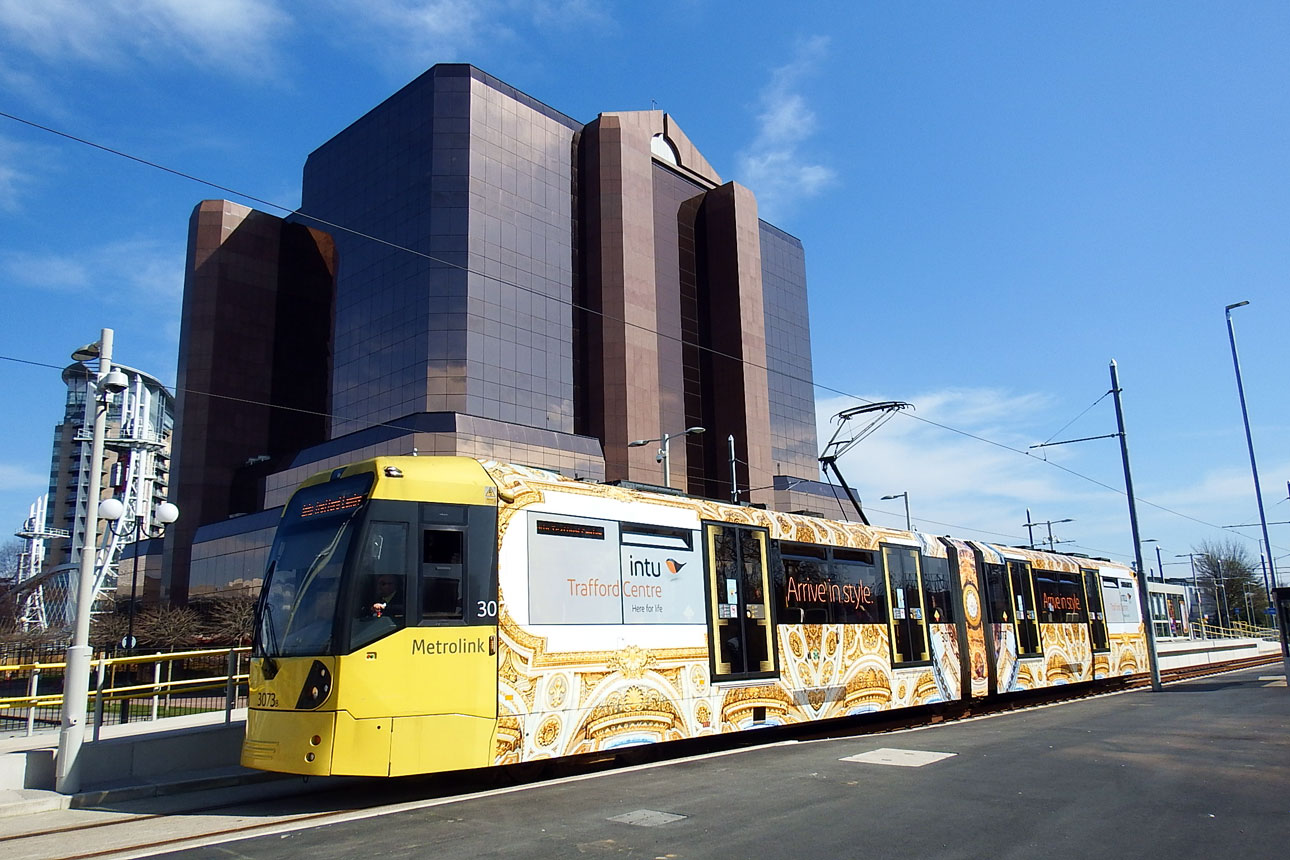 Receiving 297 votes (73.33% of the total) in the “Tram (Modern) of the Year” was Manchester Metrolink 3073. The tram received both a new advert and was the first tram to run in public service on the Trafford Park line. (Photograph by Steve Kemp)