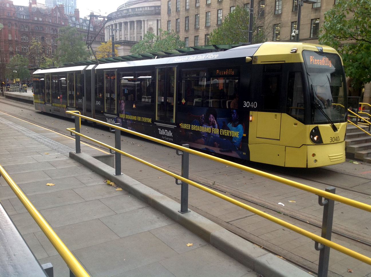 3040 advertising Talk Talk is seen at St Peter’s Square on 6th November 2018 working through to Piccadilly. (Photograph by Geoff Hope)