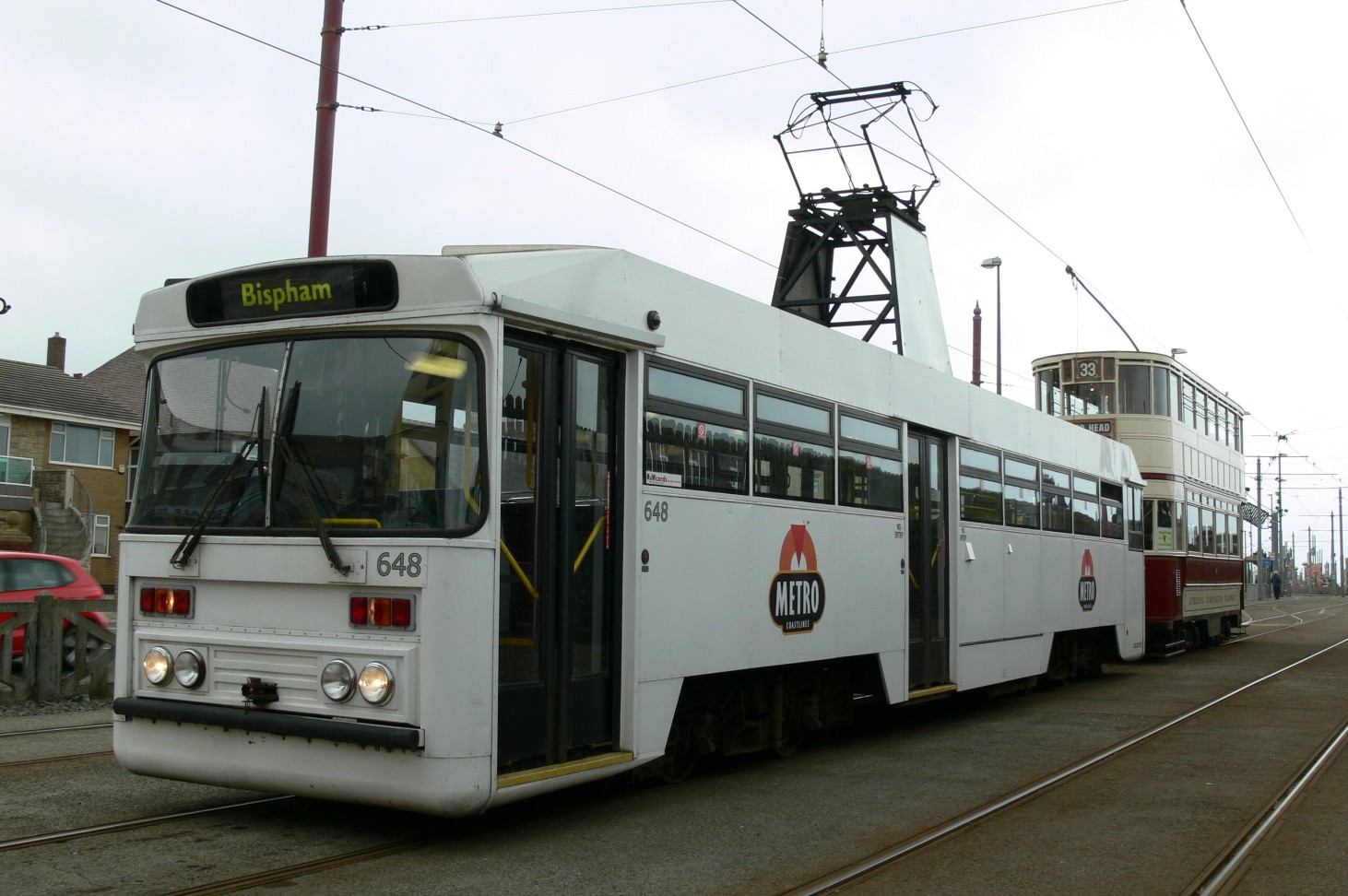 648 seen at Bispham in 2010, wearing the ghostly white livery. By the time this tram runs again, this will have been replaced by a more aesthetically pleasing coat of green and cream paint. (Photo by Andrew Waddington)