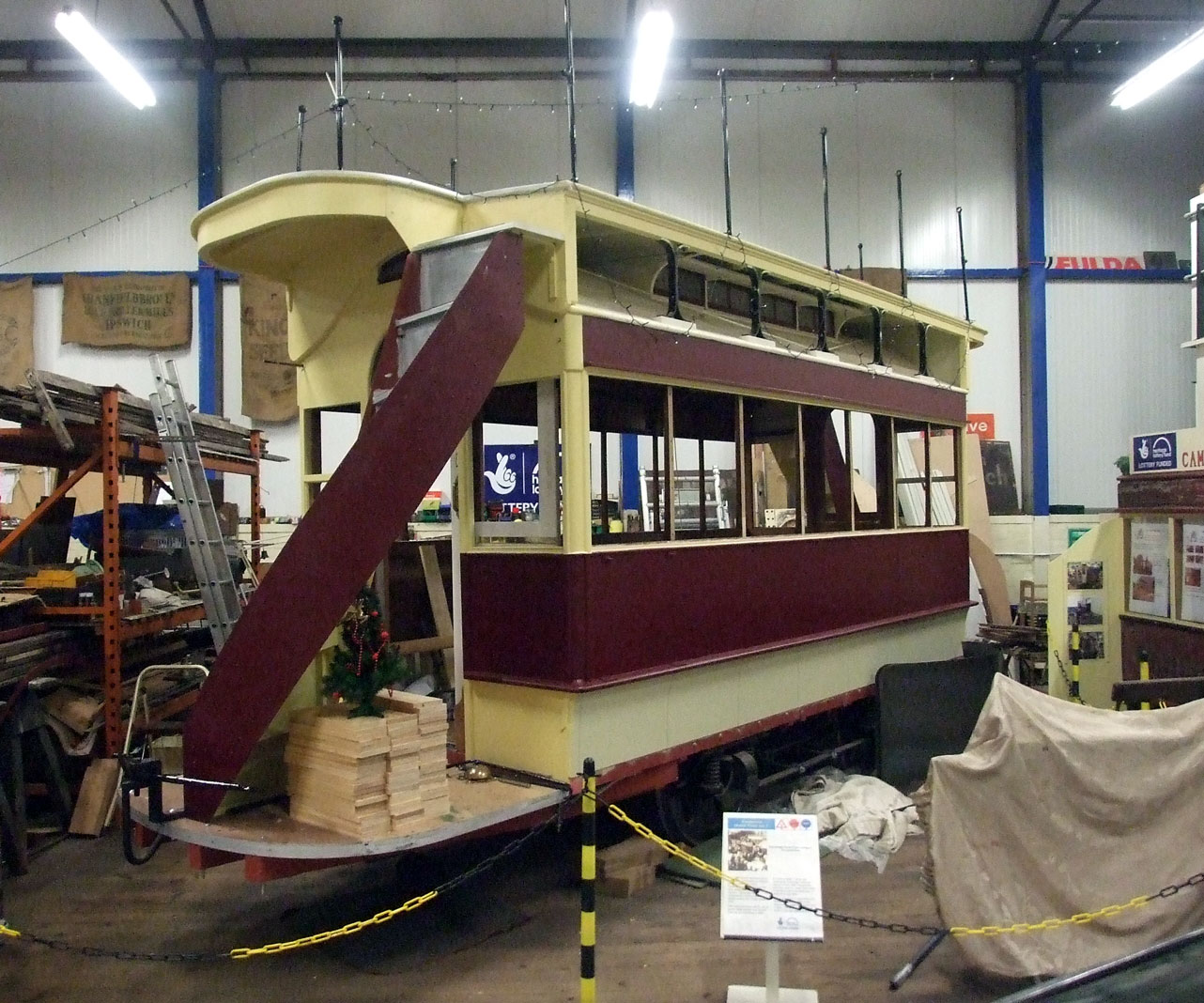 The tram at the Ipswich Transport Museum showing the good progress being made. 7 even has its own Christmas Tree!