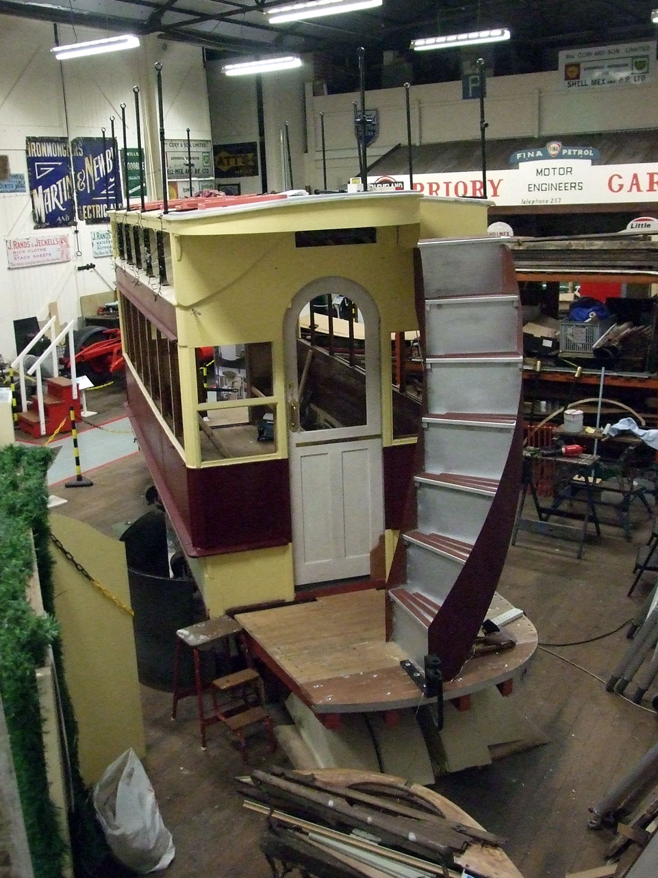 In this view you can see the progress being made on the top deck with seat frames laid our and the start of the handrail stanchions. (Both Photographs by Stephen Cobb)