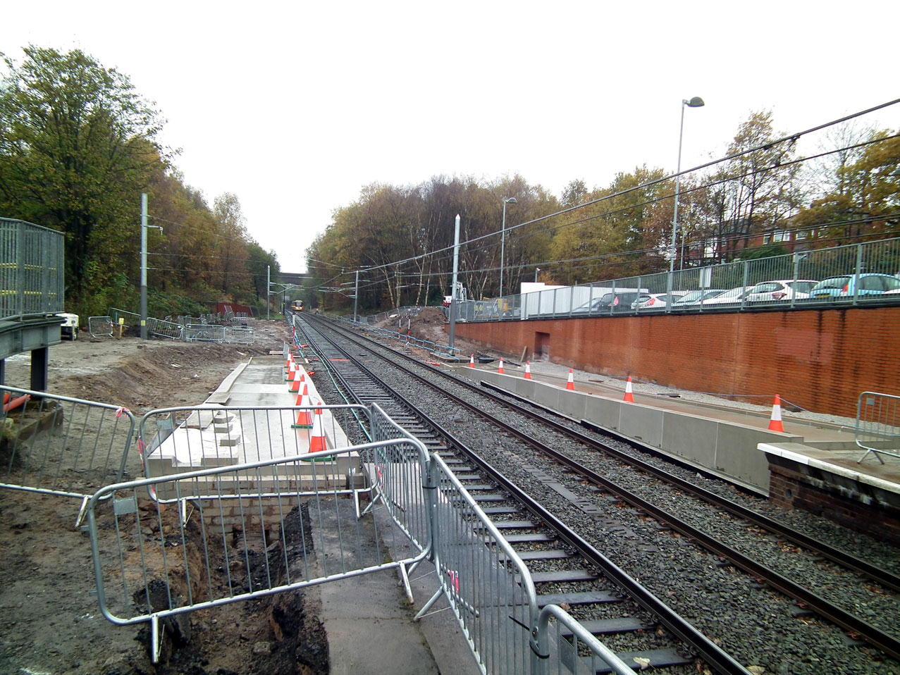 Again at the south end of the stop this image shows the newly constructed pedestrian ramps that have displaced disused sections of the former railway station platforms.