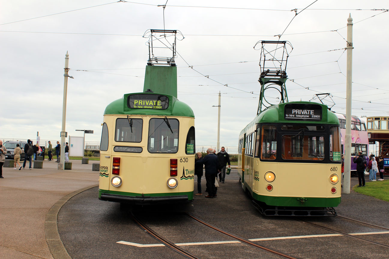 Brush 630 and Railcoach 680 stand on Pleasure Beach loop at the start of the day.