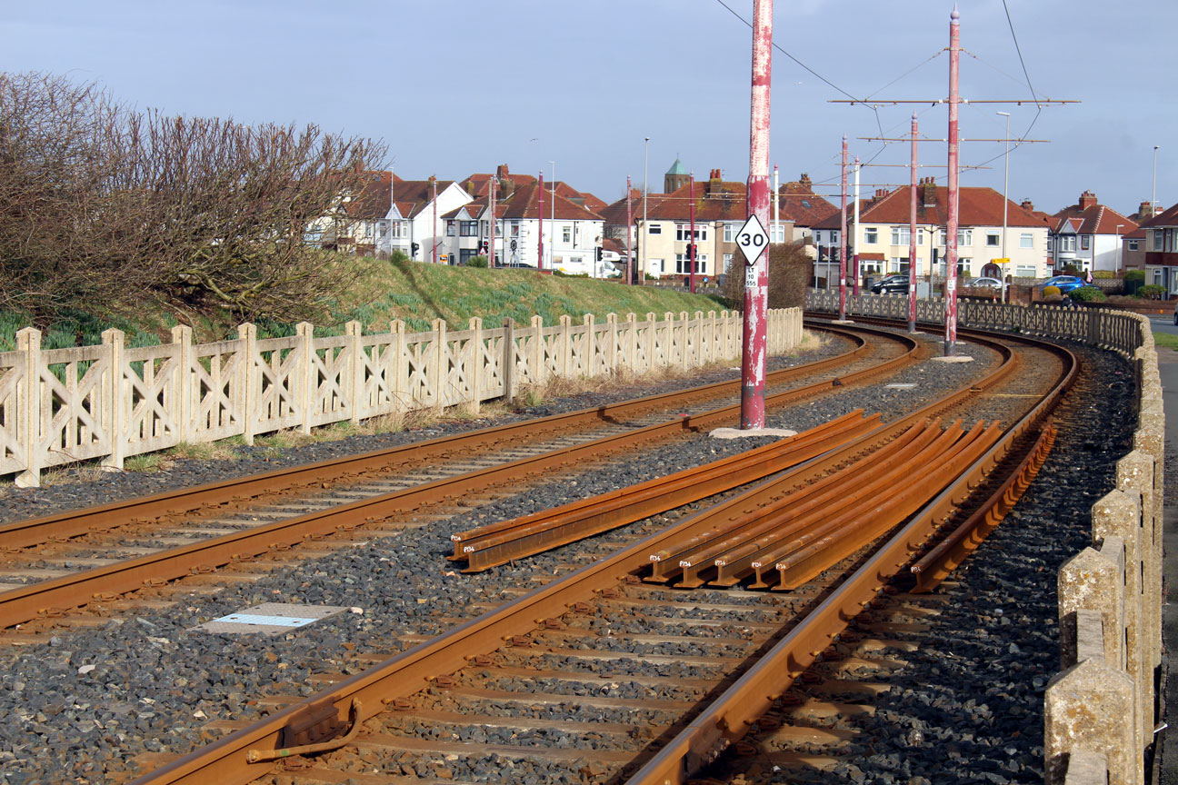To allow for some of the work to take place some of the safety features between the tracks and crossings have had to be temporarily removed. This is the scene at St Stephen’s Avenue (to the north of Cabin with Lowther Avenue stop in the distance) where the crossing surface can be seen at the side and in between the tracks.