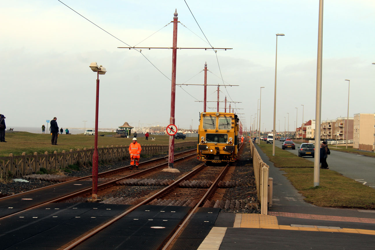 To allow for some of the work to take place some of the safety features between the tracks and crossings have had to be temporarily removed. This is the scene at St Stephen’s Avenue (to the north of Cabin with Lowther Avenue stop in the distance) where the crossing surface can be seen at the side and in between the tracks.