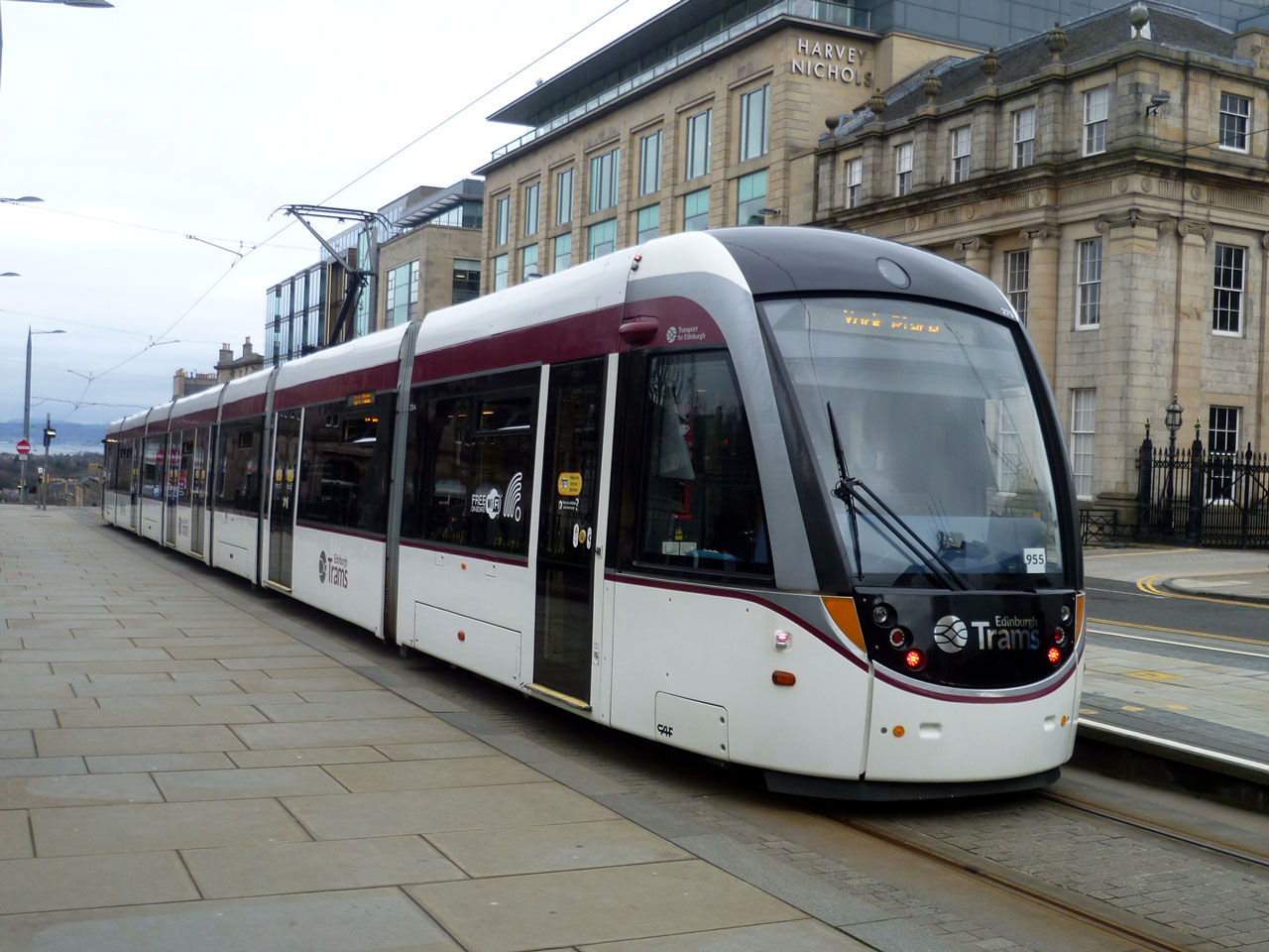 273 stands stationary at St Andrew Square while services were suspended between West End and York Place.