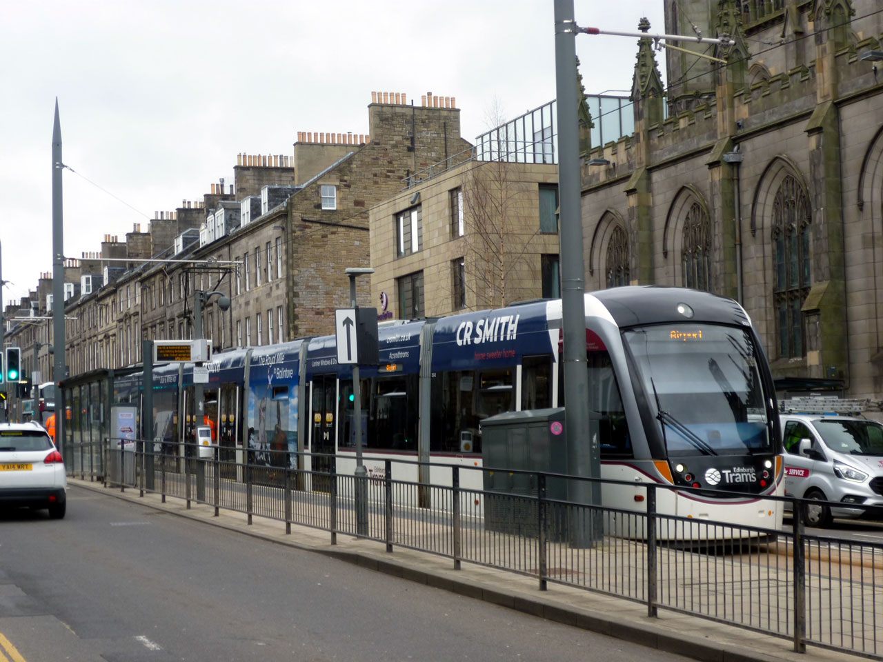 Another tram waits at a stop unable to proceed while the issue with a tram fault was resolved. This is 253 at York Place. (Both Photographs by Roy Calderwood, 29th March 2021)