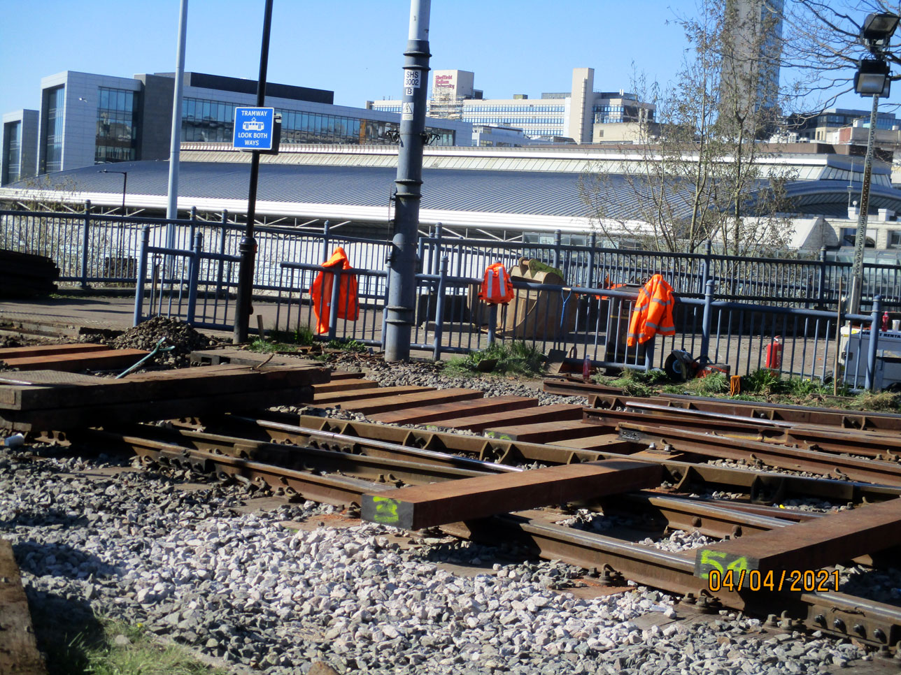 This final shot shows a close-up view of the new sleepers on the far side, new ballast down on the track and new rails awaited. (All Photographs by Stuart Cooke, 4th April 2021)
