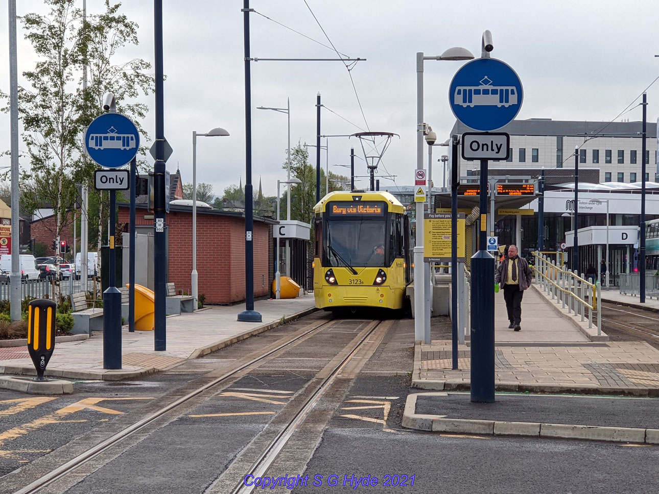 Monday 17th May saw the unusual destination of Bury on trams running to Ashton. In this view we see 3123 at the Ashton-under-Lyne terminus showing the Bury destination.