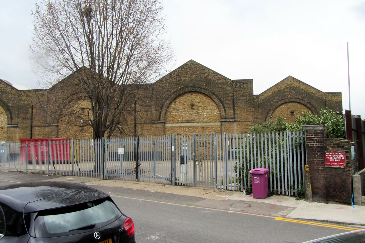 The former tram depot is seen here with where trams would once have entered clearly seen.