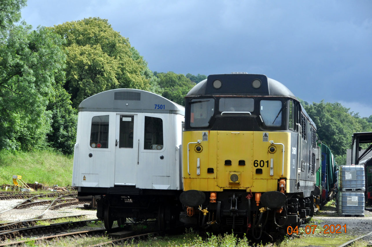 Have we gone mad? There’s not a tram in sight for this photo but there is a tram link! With a class 31 diesel on the right – 31 601 – alongside is some old London Underground stock which is understood to be being used by UK Tram to evaluate different bogies and lithium batteries. (All Photographs by Ken Jones, 4th July 2021)