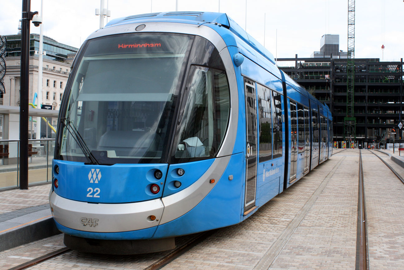 Two photos showing 22 standing at Library waiting out time before it departs with a northbound journey to Wolverhampton St George’s. The extension to Hagley Road will continue beyond the tram in the first shot. (Both Photographs by Martin Miller, 5th July 2021)