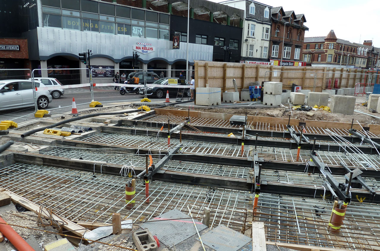 This view is at the very front of the worksite where the tracks come in from Talbot Road for the final approach to the terminus. As can be seen here the wire mesh is in place in readiness for the concrete pour.