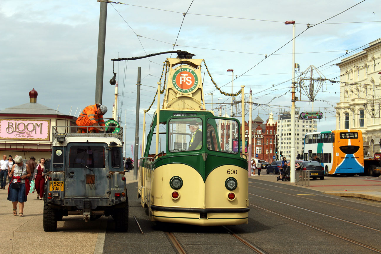 Fitters attend to 600 at North Pier and Tower with the broken trolley head being fixed before the tram can go on its way. (All Photographs taken on 12th August 2021)