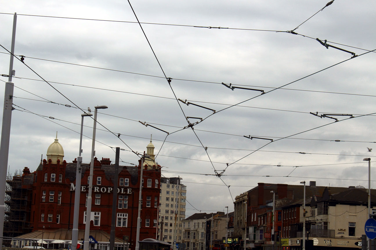 Looking north where the north curve disappears up Talbot Road this shows the state of the wires here.