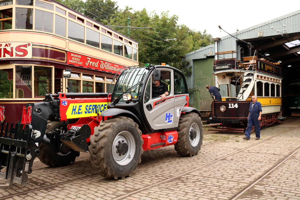Monday 13th September and Newcastle 114 is towed out of the depot by the tractor. It will then be reversed back onto road 3 to allow its motors to be refitted over the pit.