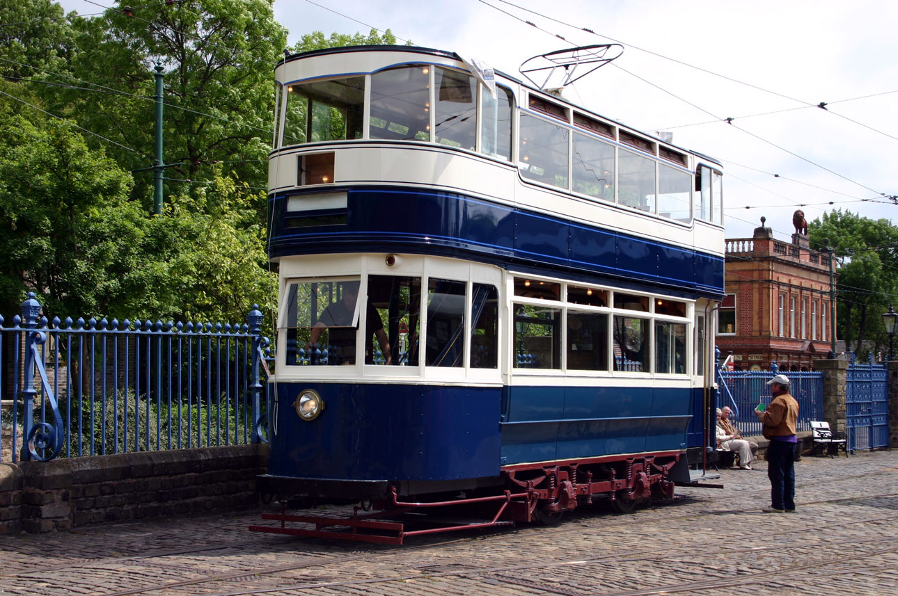 The not quite fully restored Leeds 345 is seen in the depot yard on 12th June 2005. Still waiting for final lining of the livery plus the fitting of destination blinds the tram would be on test during the event.