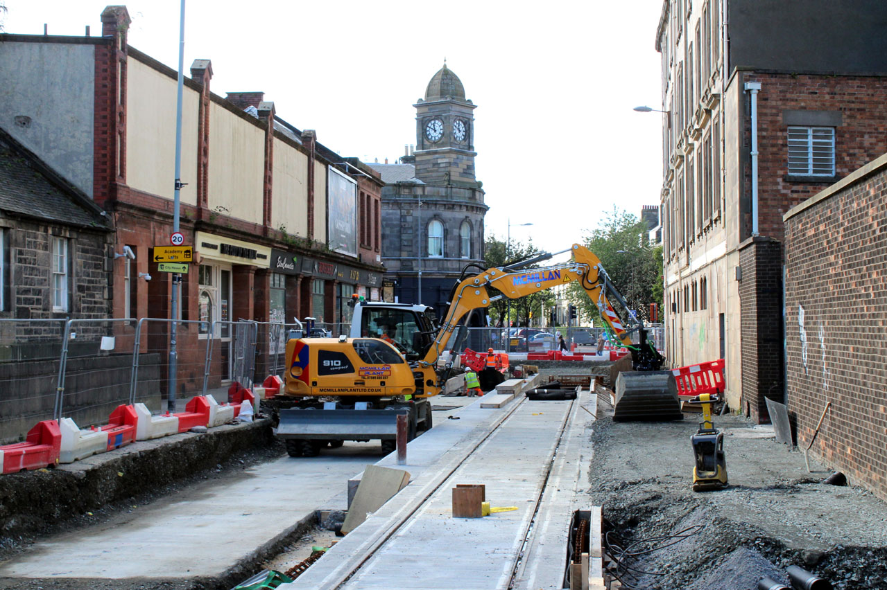 This shot is looking south west towards Duke Street with works underway in Constitution Street, Leith.