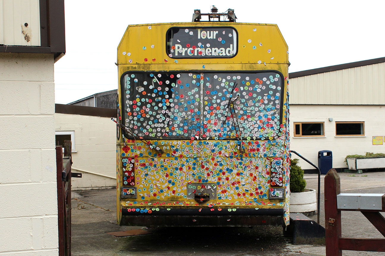 An end view of the tram today with plenty of stickers in place. This is the plain yellow end which used to advertise Fleetwood Market.