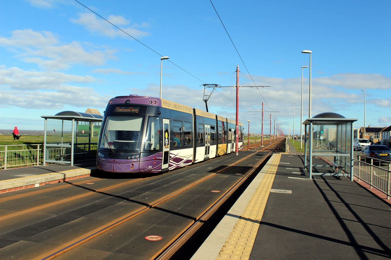 In this photo we see 013 on the northbound track having just departed from the stop with a working to Fleetwood Ferry. Note on the right the pedestrian crossing which gives good access to local residents for the stop. (All Photographs by Gareth Prior, 25th September 2020)