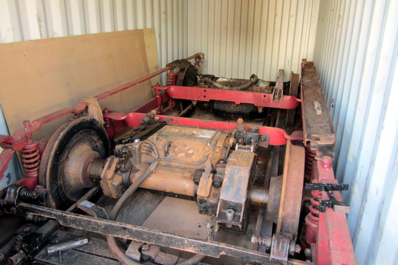 A truck of 11 was constructed at Eastleigh railway works a number of years ago and the motors now need to be dried out before it can be rolled under the tram.