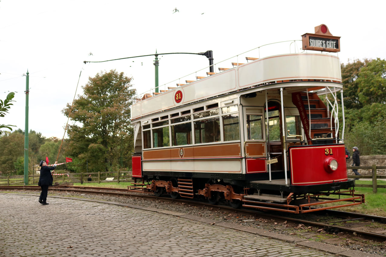 14th October 2021 saw Blackpool 31 allocated to service. Here we see the trolley being turned on the tram where trams are currently turned just beyond the Town street.