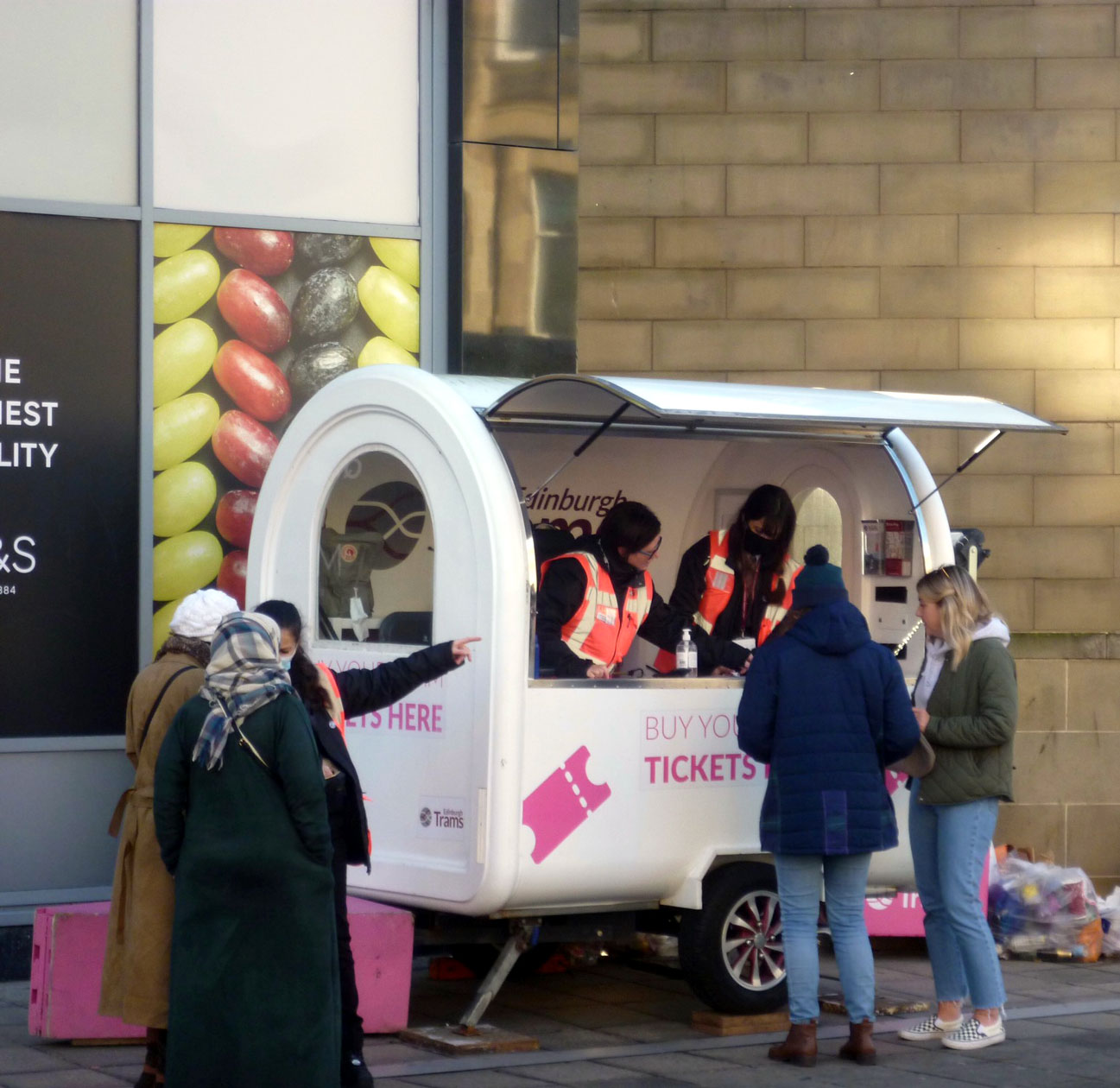 The mobile ticket office standing at Haymarket to allow passengers to easily purchase their tickets.