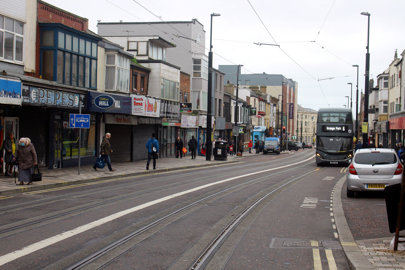 Back towards the Prom and as a line 6 bus is at the temporary bus stop we can again see the overhead in place.