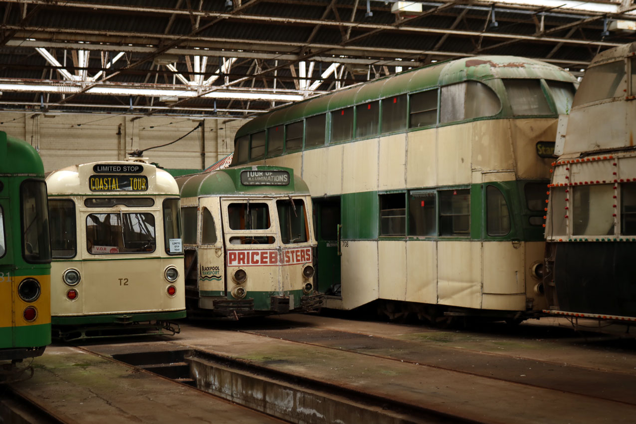 Scenes such as this are included in the tours. A look at several long-term withdrawn trams including Twin Car Trailer T2, Brush Car 625 and Balloon 708. (Photograph by Trevor Hall, 24th November 2021)