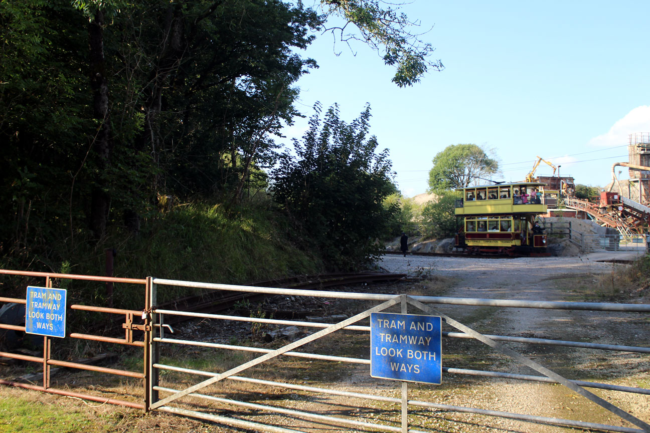 Chesterfield 7 passes Cabin Crossing on the way back to the main museum site during Tram Day. An Inspector strides purposefully up the line to check on what is delaying things. (Photograph by Gareth Prior, 18th September 2021)