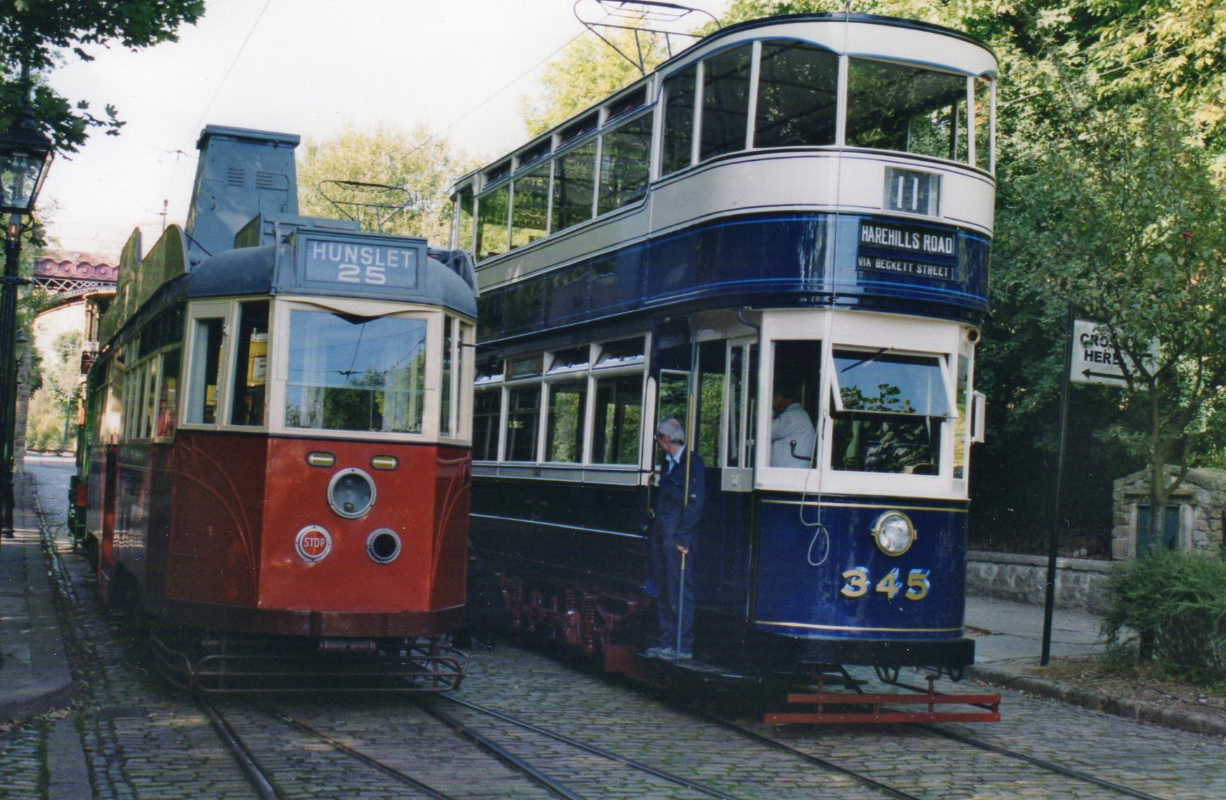 Our first photo shows Leeds 600 having just emerged from the depot yard, alongside then newly restored Leeds 345, which had yet to receive its external adverts at that time.
