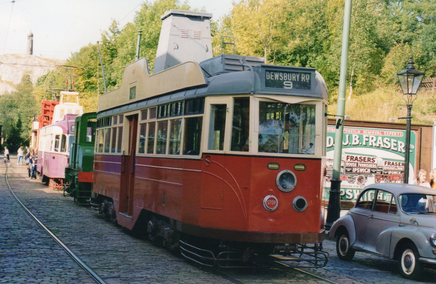 A delightful scene with Leeds 600 outside the Red Lion. Only the lack of a bow collector and close proximity of the loco give away the fact that 600 did not get here under its own power!