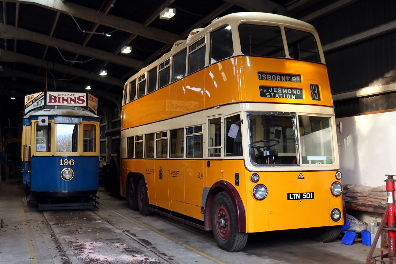 Alongside 196 remains Newcastle trolleybus 501 waiting for a time when an operating trolleybus route is added as part of the Remaking Beamish project. (All Photographs by Trevor Hall, 2nd January 2022)