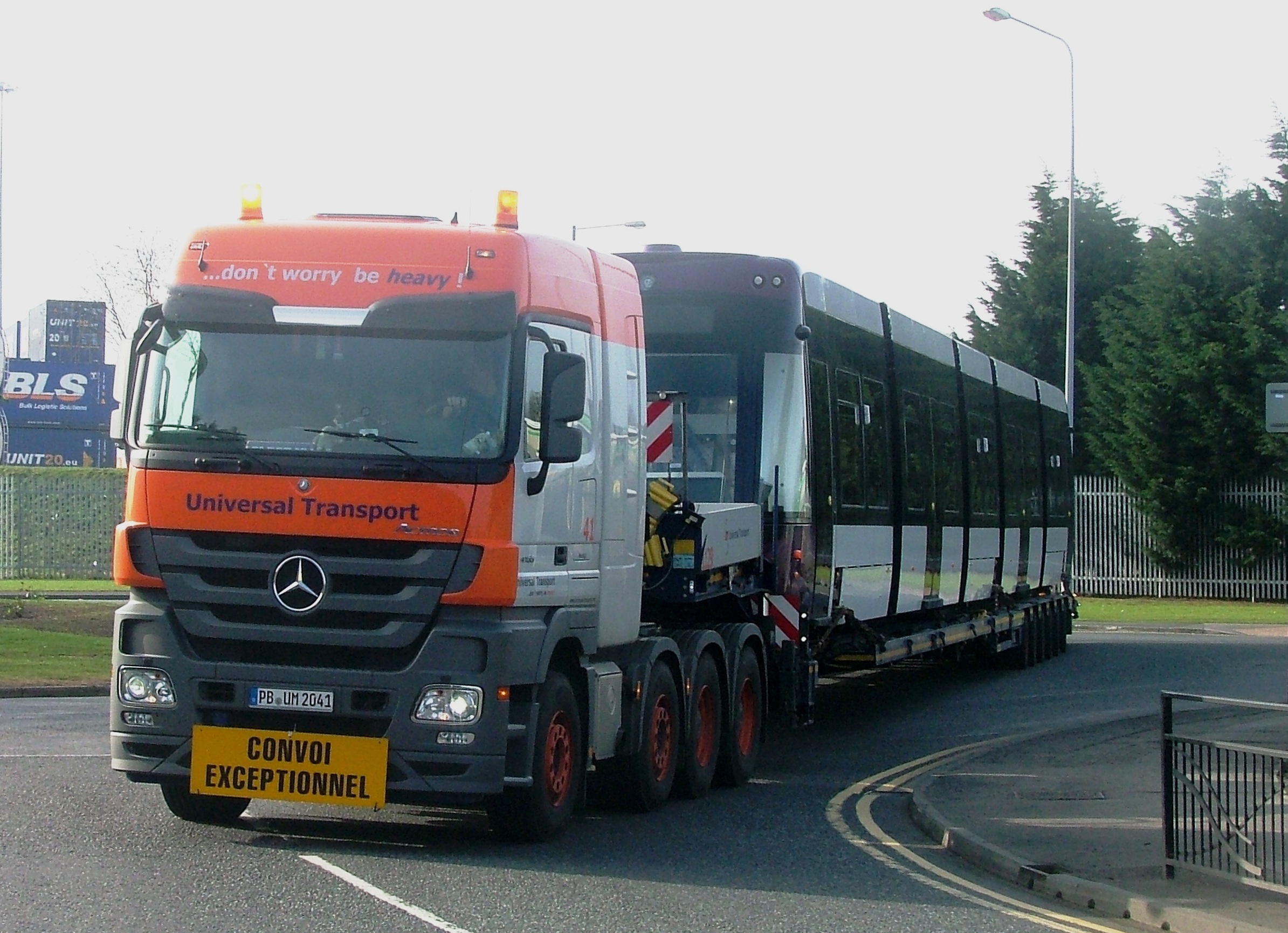Another look at car 010 leaving Hull aboard its enormous transporter. (Photo by Paul Derrick)