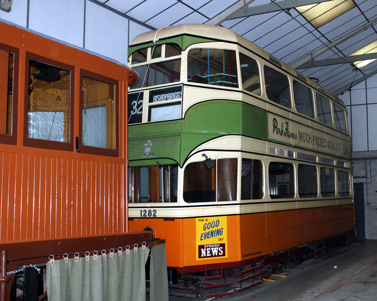 With the centre road of Depot V temporarily cleared it was possible to get a better view of some of the trams still inside. Glasgow 1282, seen here, has not operated since the ‘Glasgow 50’ event weekend held at the museum back in September 2012, although a fundraising appeal is in place to get it back into the operational fleet.