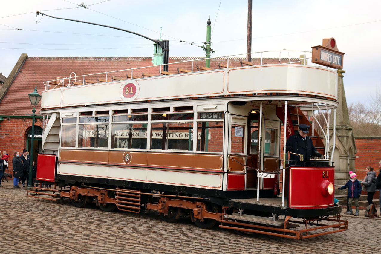 Sunday 23rd January 2022 saw Blackpool 31 in service at Beamish which was out and about despite the cold weather – obviously visitors to Beamish are hardy souls and don’t mind the open top deck! Here we see the tram in the Town getting ready to return to Foulbridge.