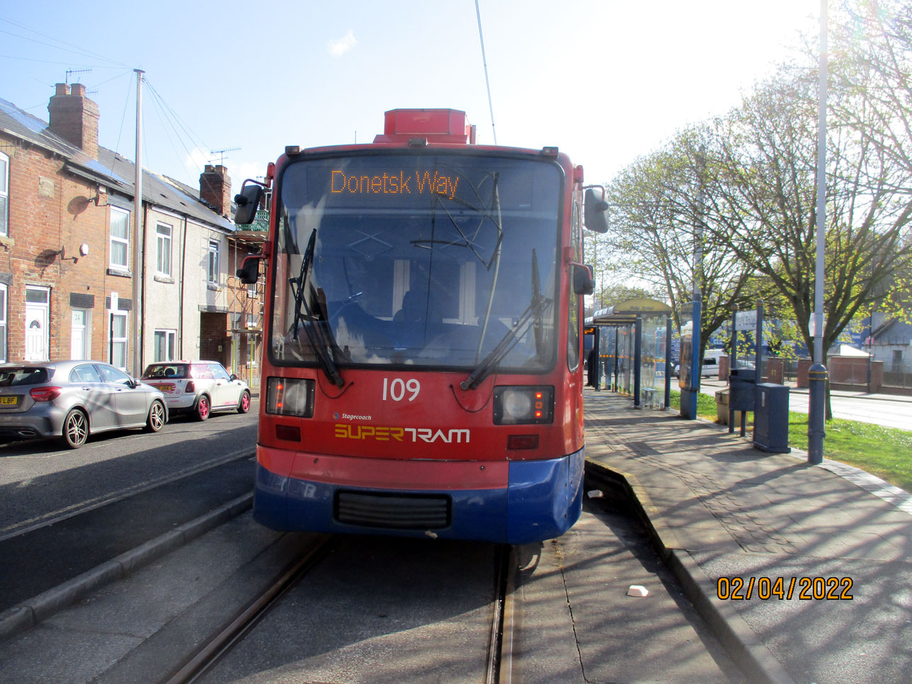 109 also with Donetsk Way as the destination as it stands at Malin Bridge. (Both Photographs by Stuart Cooke, 2nd April 2022)