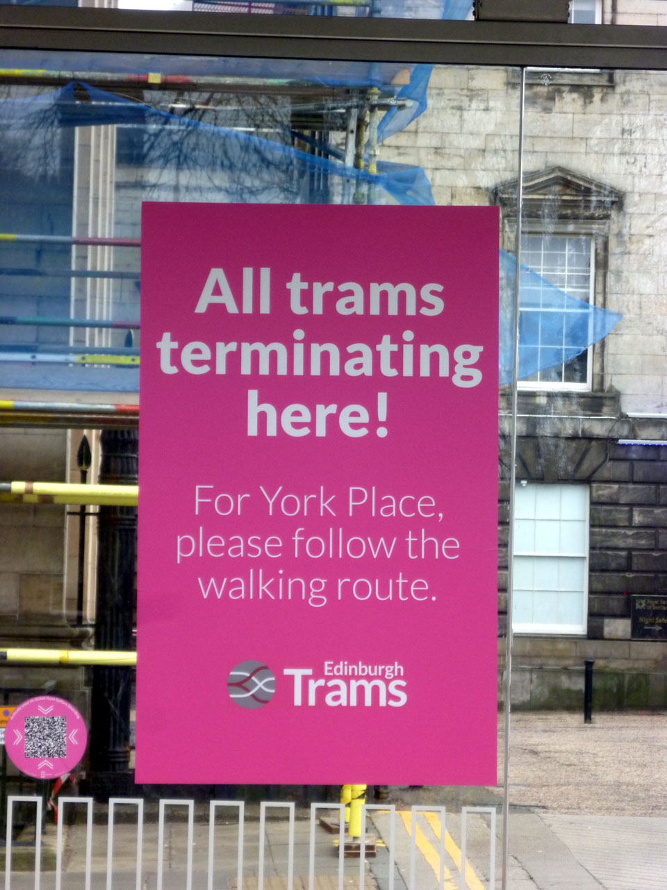 No excuse for not realising services are ending at St Andrew Square! This large poster is in the shelter at St Andrew Square.