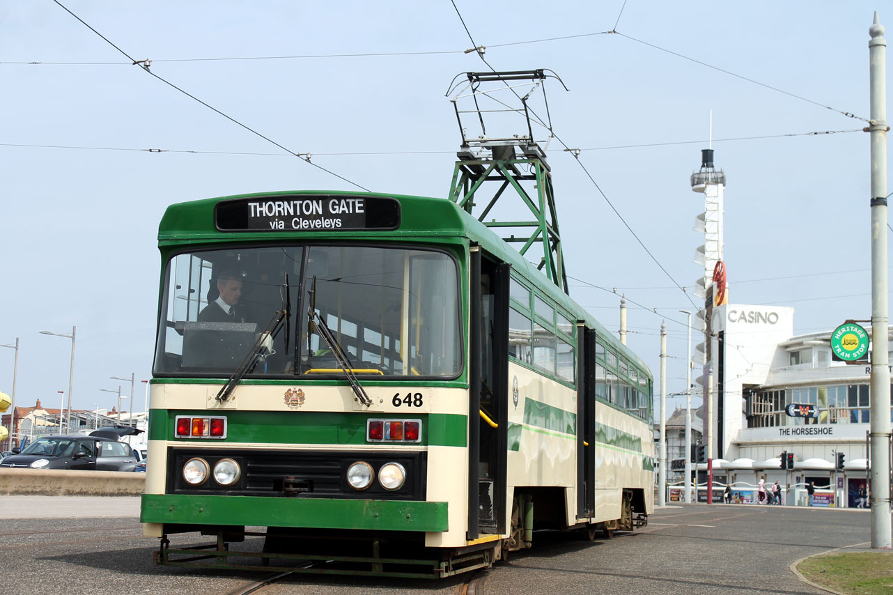 Centenary 648 sits on Pleasure Beach loop ahead of running a service to Thornton Gate.