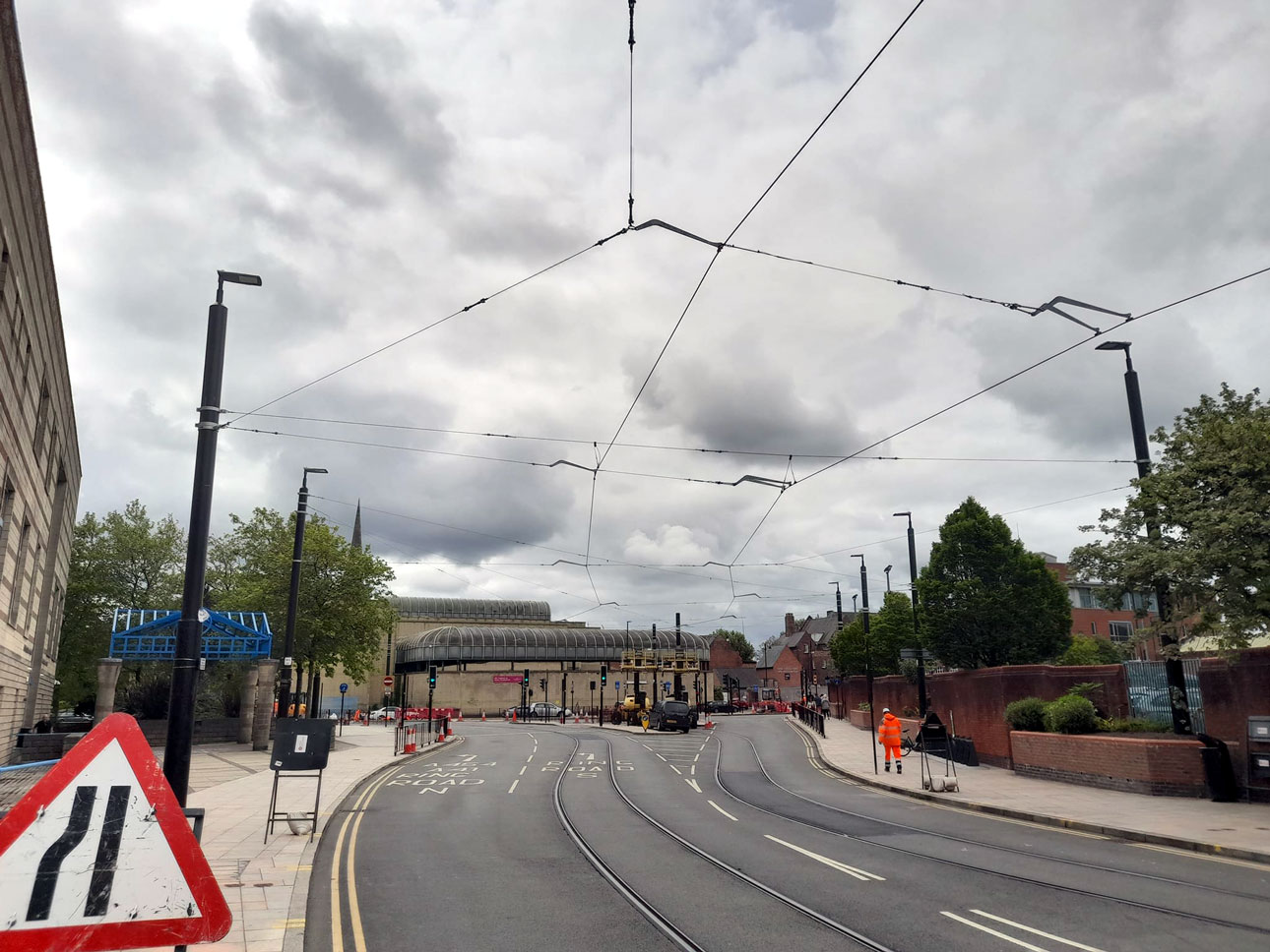 On Pipers Row and looking back to the current line this view shows the overhead now in place.