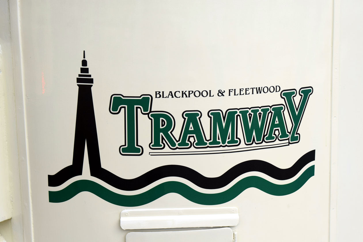 A close-up of the old Blackpool Tramway “Tower and Waves” logo.
